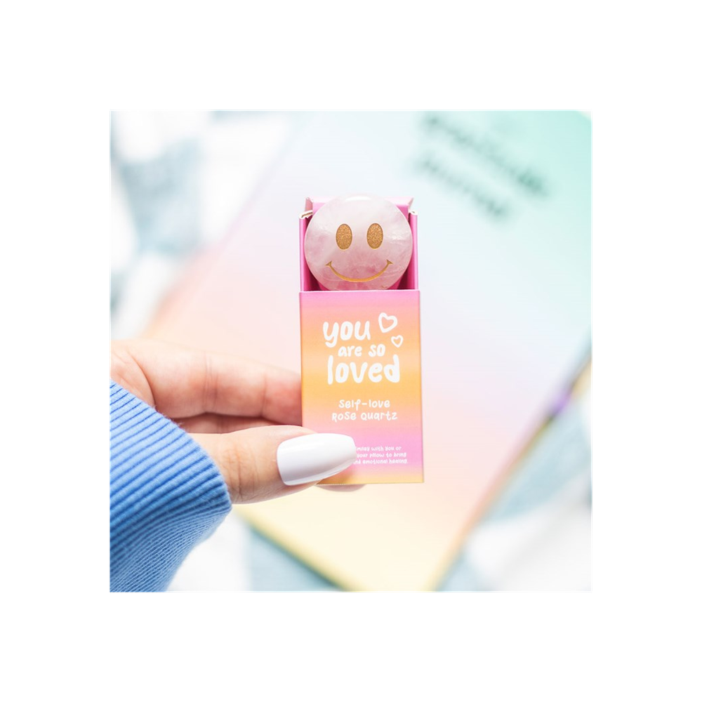 This smiling rose quartz crystal is happiness in a box and serves as the perfect reminder for anyone who needs to be a little kinder to themselves and appreciate their worth and wellbeing. Whether it's a little gift for others or a gift to self, it's sure to be an appreciated token through the inevitable ups and downs of life